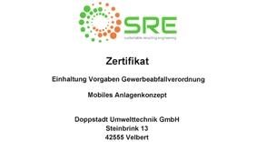 The treatment concept developed by Doppstadt Umwelttechnik GmbH for the pre-treatment of mixed commercial and demolition waste has now also been certified by an independent expert. It officially proves that this plant concept fulfils all legal requirements of the ordinance in accordance with § 6. In addition to the considerable economic advantages of this concept, we can now also guarantee 100 per cent legal certainty.
